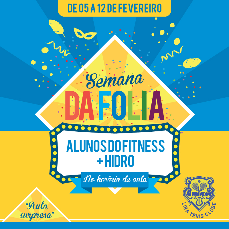 Entrando no clima de carnaval, de 5 a 12 de fevereiro, estaremos preparando aulas surpresas para os alunos de fitness e hidroginástica.