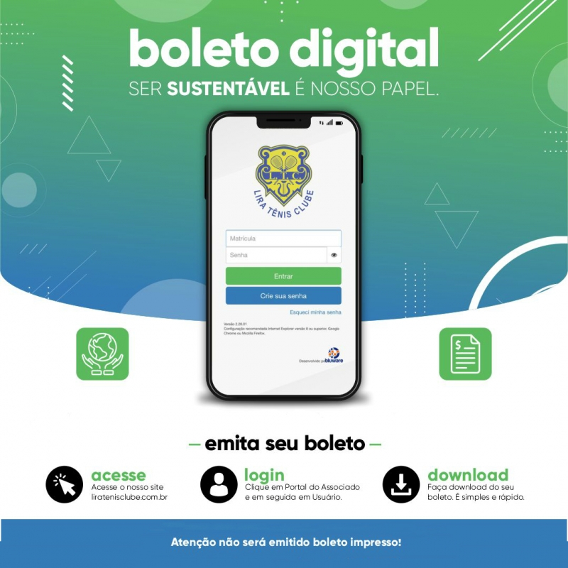 Visando a prática sustentável e a utilização da tecnologia como meio prático de comunicação, a partir de janeiro de 2020, os boletos referentes as mensalidades serão enviados somente por e-mail e disponibilizados em nosso portal.