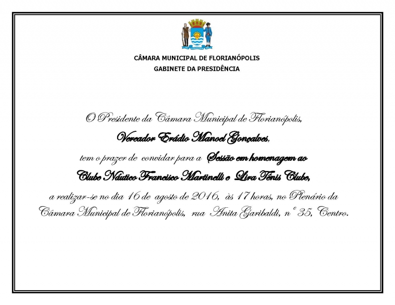 Câmara Municipal de Florianópolis prestará homenagem ao Lira Tênis Clube pelos 90 anos de fundação.