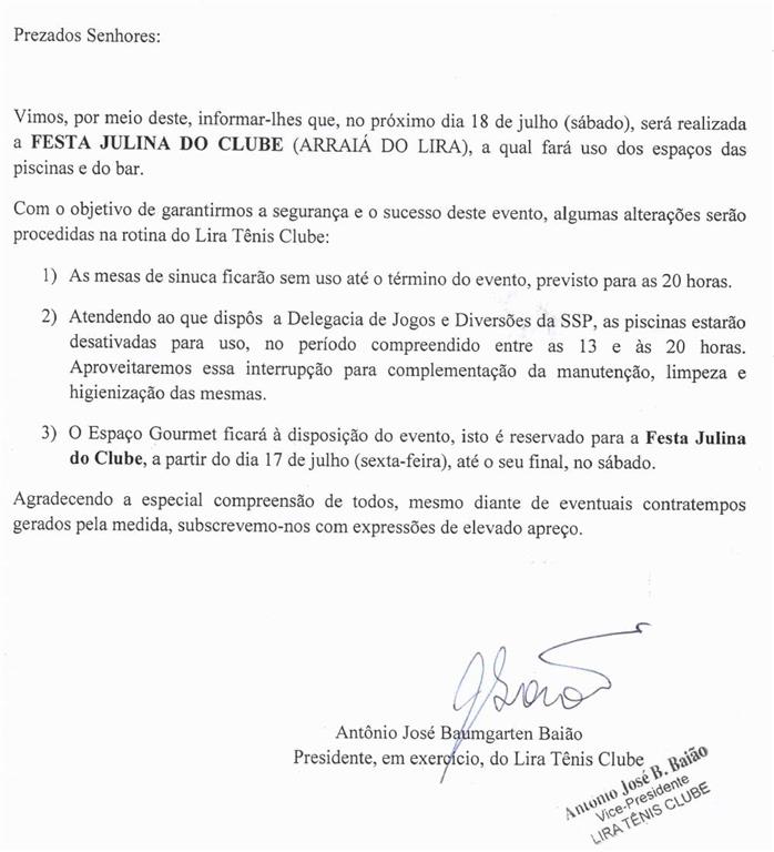Comunicado – Arraiá do Lira