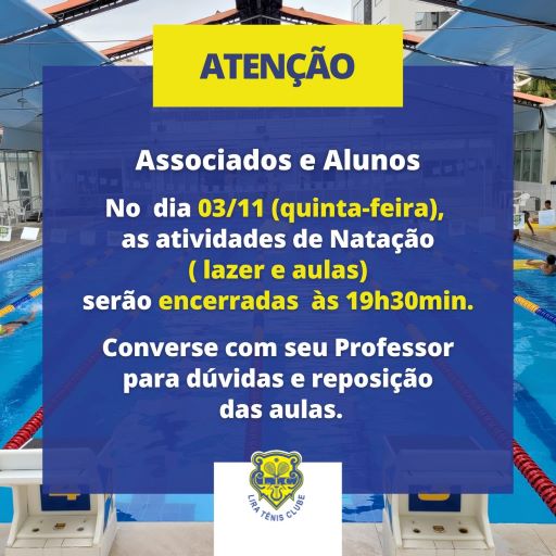 Natação – Alteração de horário no dia 3/11