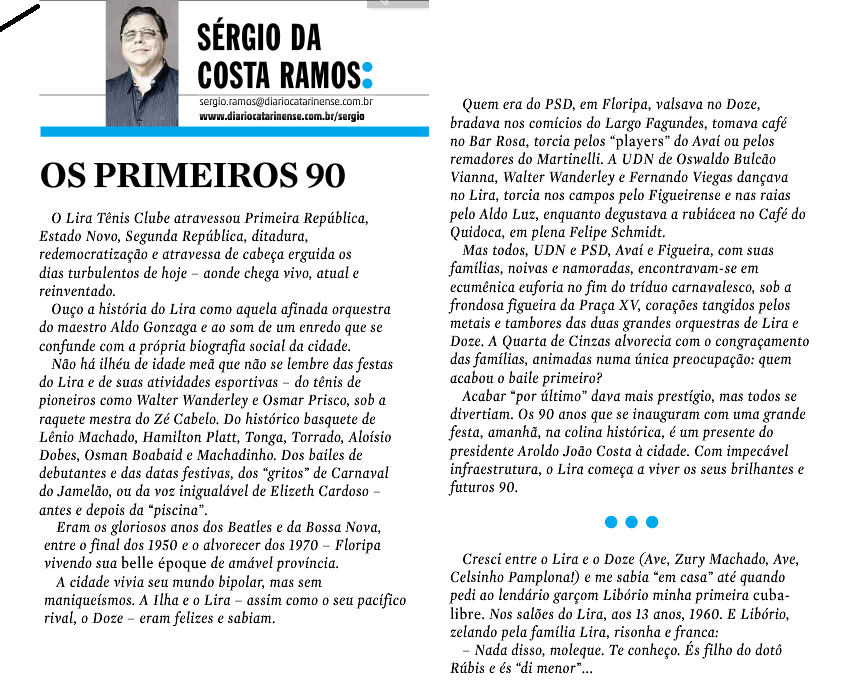 O Lira e um cllube desportivo e social localizado na área central de Florianópolis, em plena rua Felipe Schmidt. Fundado há quase um século.