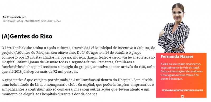 Com grande satisfação, compartilhamos o Apoio do Lira Tênis Clube ao Projeto (A)Gentes do Riso, através da Lei Municipal de Incentivo à Cultura.