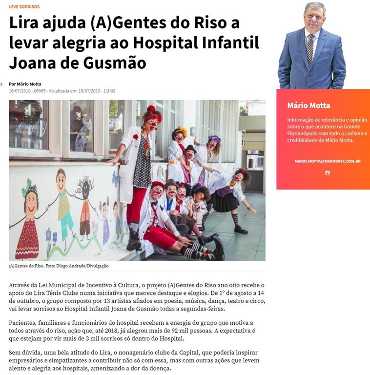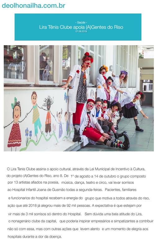 Com grande satisfação, compartilhamos o Apoio do Lira Tênis Clube ao Projeto (A)Gentes do Riso, através da Lei Municipal de Incentivo à Cultura.